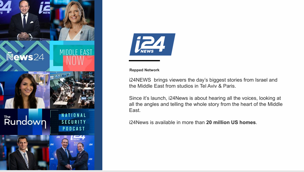 i24 News broadcasts across the United States and internationally, giving brands exposure on a respected global platform.