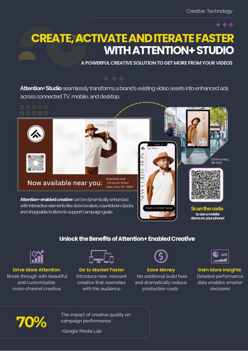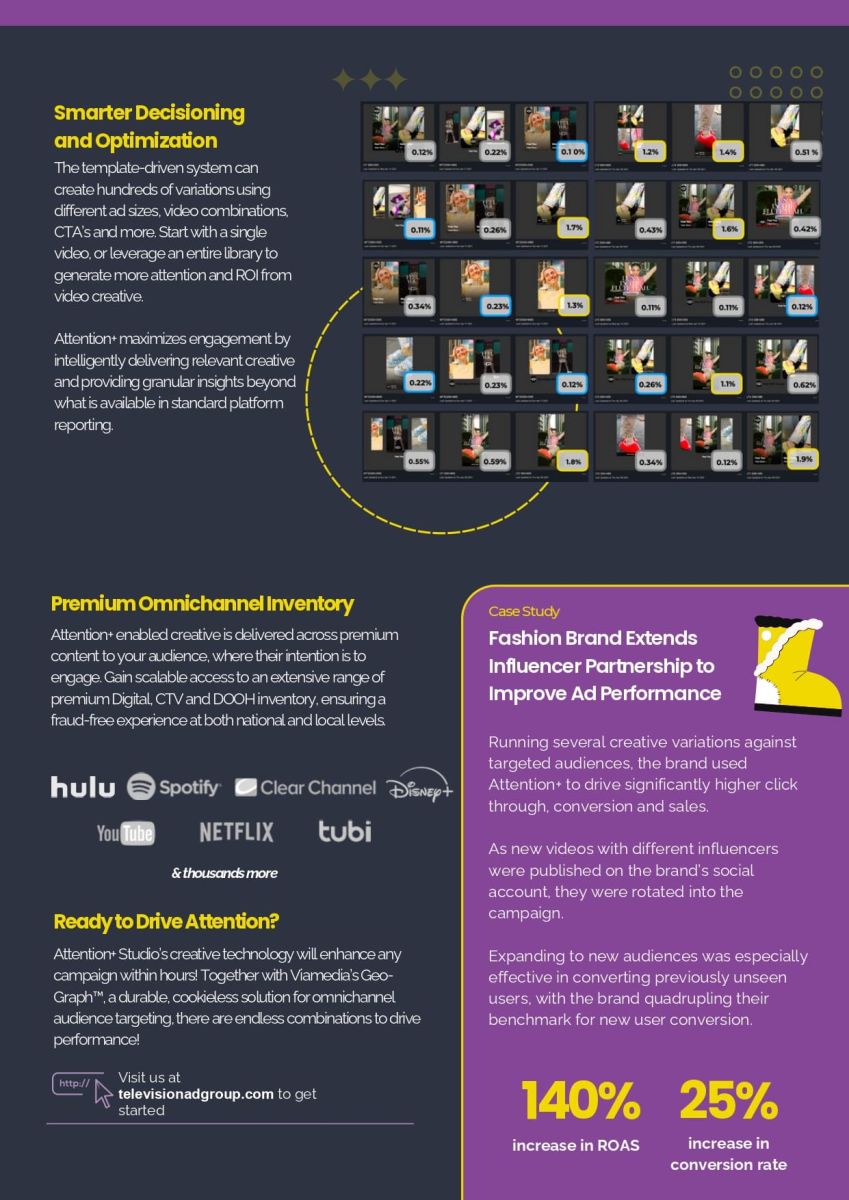 Do you value transparency, ROI, ease of collaboration, and digital partners who bring true marketplace disruption. Attention+— deliver mobile and CTV commercials that are unique, cost-effective, easy to implement (we can use existing social, YouTube, and commercials) and incredibly engaging. Call us for advertising details at 212-844-9057 or email info@televisionadgroup.com