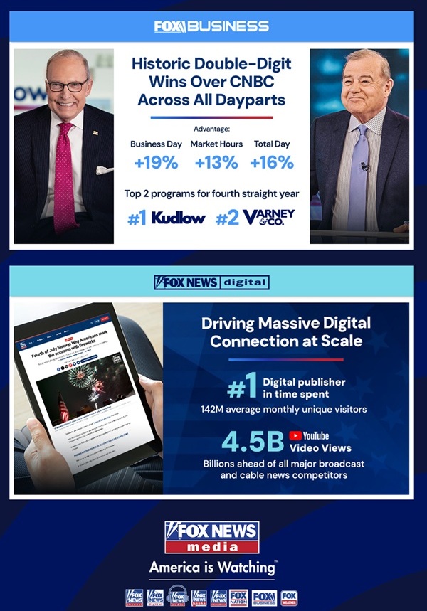 Fox News Media’s continued growth in 2025 underscores its position as one of the most effective advertising platforms for reaching America’s business and professional audiences.
