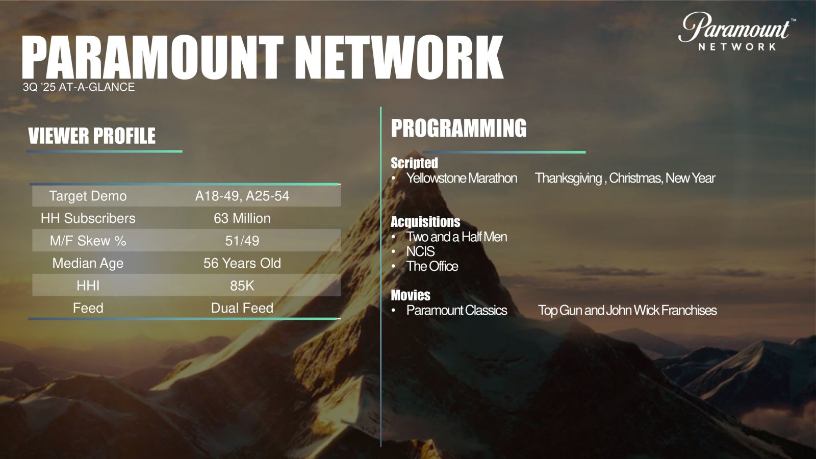 Paramount Network is a premium entertainment destination that pushes the limits of storytelling with bold scripted and non-scripted series. Inspired by over a century of cinema, Paramount Network brings today’s brightest stars and big-screen storytelling to every screen with immersive, inclusive, and deeply personal programming.