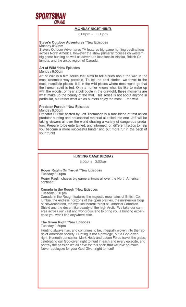 Sportsman Channel features a wide range of premium outdoor content, including:
