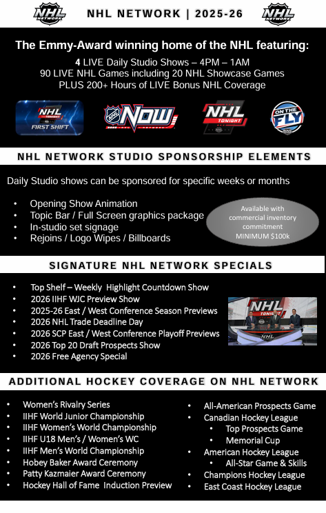 To advertise on the NHL Network, call 212-844-9057 or email info@televisionadgroup.com